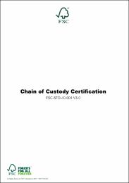 This is the core standard for FSC CoC certification that specifies the requirements which apply to all CoCcertified and applicant organizations with respect to sourcing, processing, labelling, and sale of forest-based products as FSC certified.